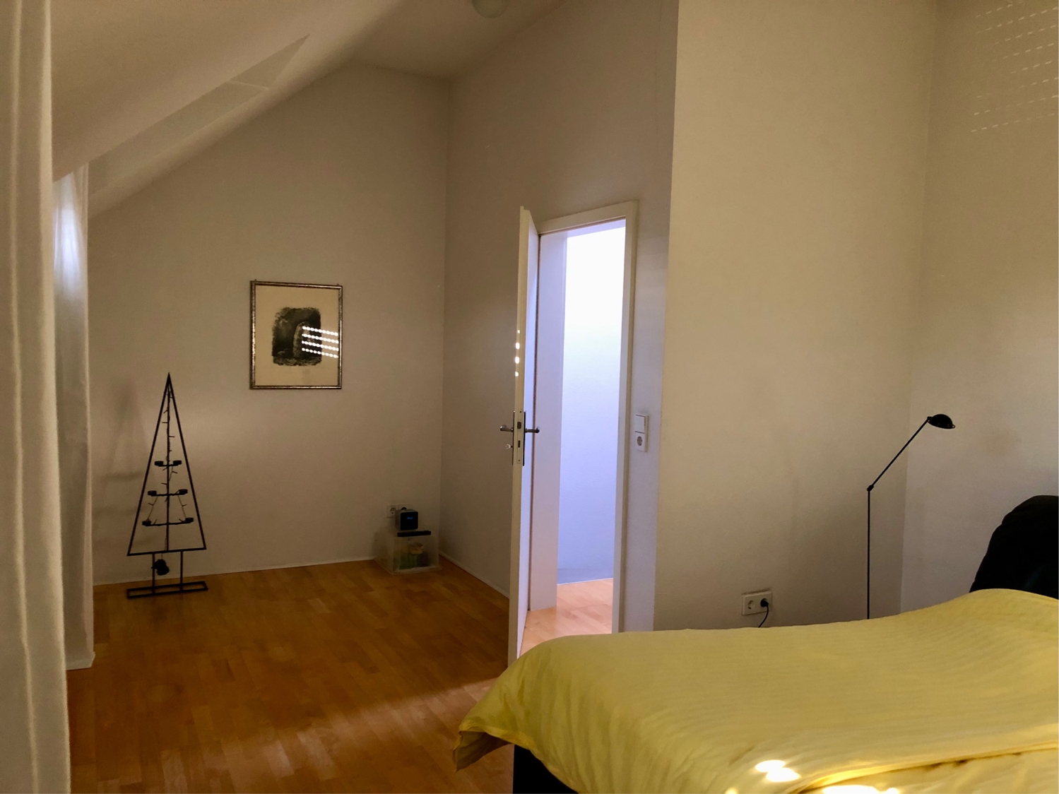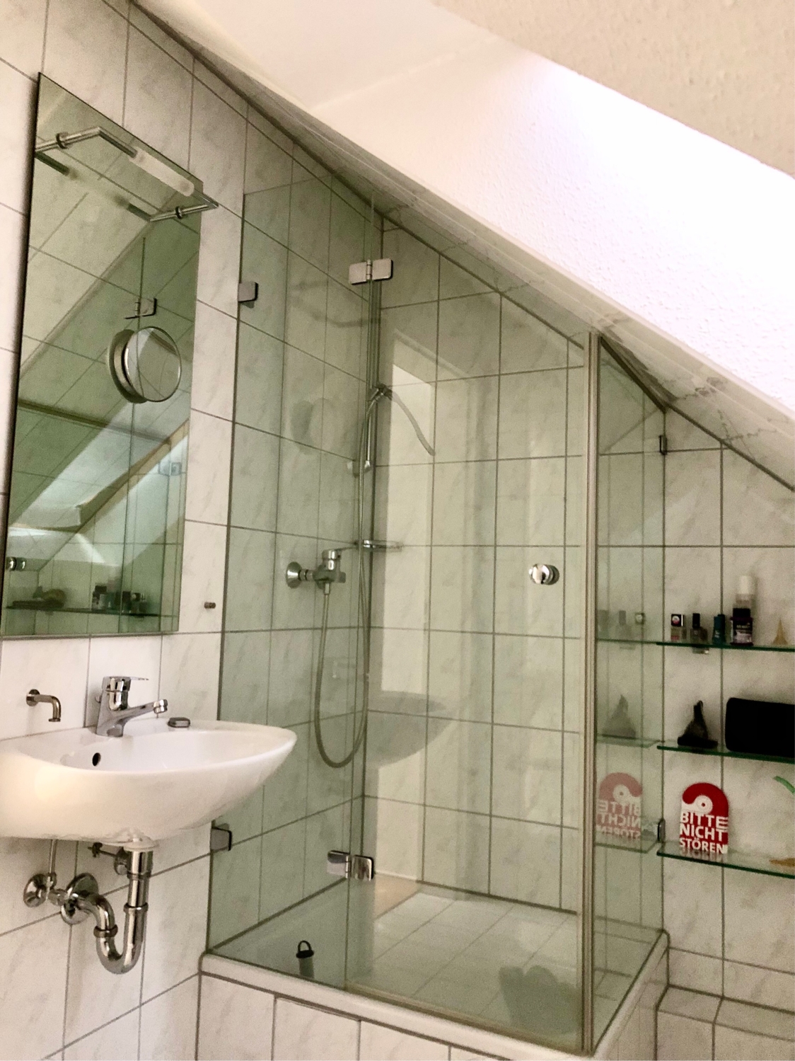 Im ausgebauten Dachgeschoß, das ebenfalls mit Parkett ausgelegt ist, finden sich noch das Schlafzimmer sowie ein weiteres Kinderzimmer/Büro. Auch hier ist ein hell gefliestes Duschbad mit WC vorhanden.